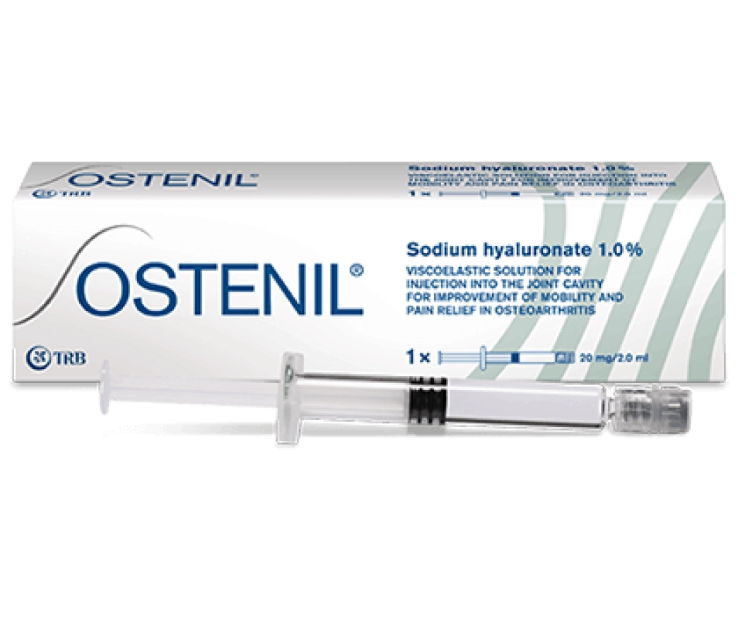 OSTENIL is een steriele injecteerbare oplossing met 1% hyaluronzuur, bedoeld ter verlichting van gewrichtspijn en het verbeteren van de mobiliteit bij artrose van grote synoviale gewrichten zoals knie, heup en schouder. Dankzij de biotechnologisch geproduceerde, niet-dierlijke samenstelling is OSTENIL® uitstekend verdraagbaar en geschikt voor breed therapeutisch gebruik.
